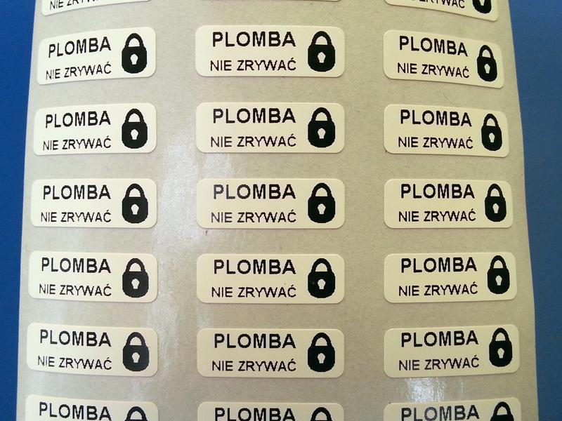 Przykładowe formy nadruku zależne od rozmiaru plomby: datownik, logo, numerator, dowolny tekst, kod kreskowy (zaleca się tylko na plombach o podkładzie białym!), oznaczenia firmy, dane kontaktowe, dane reklamowe, identyfikacja produktów, identyfikacja promocji na produktach, identyfikacja do inwentaryzacji i wiele innych możliwości