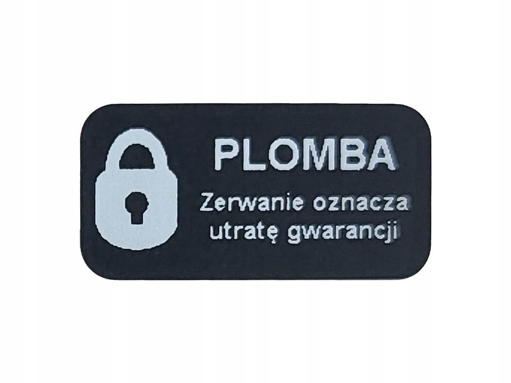Sposób zabezpieczenia: Po odklejeniu NA PLOMBIE pojawia się napis OPEN VOID. Ślad na powierzchni po krótkim czasie od aplikacji jest łatwy do usunięcia.