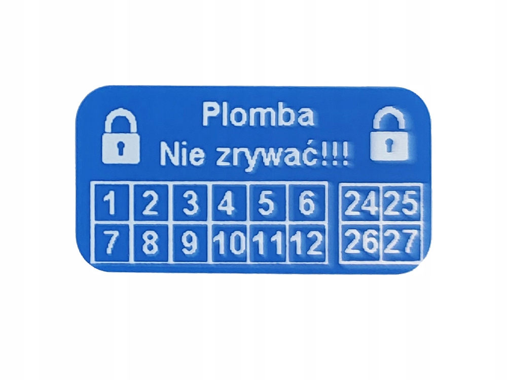 Na plombach możemy wydrukować dowolny nadruk - numerator, datownik, loga, grafiki, napisy. W przypadku grafik ważna jest jakość pliku który Państwo do nas prześlą.