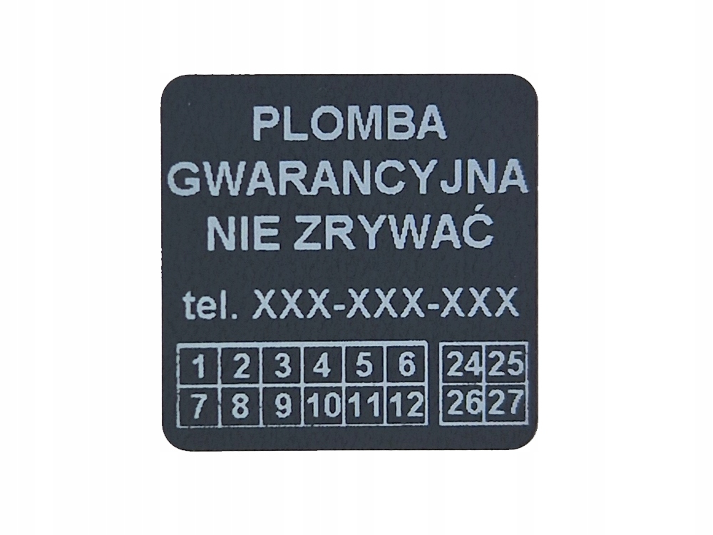 Oferujemy wykonanie 250 sztuk plomb gwarancyjnych w rozmiarze 20x20mm, z folii czarny OPEN VOID czysto usuwalny.