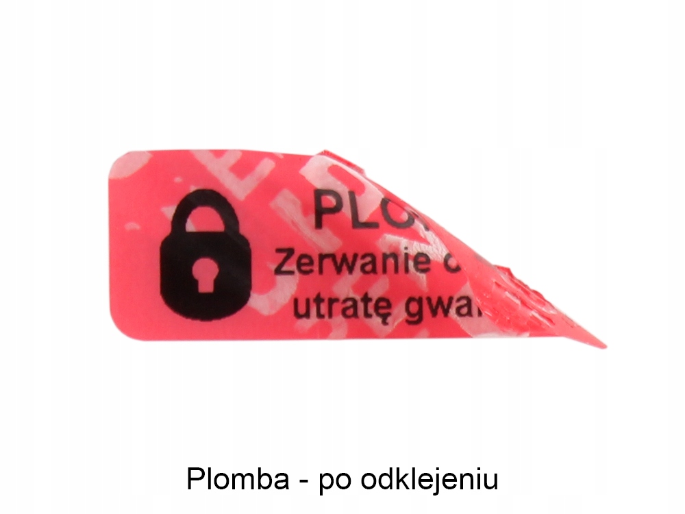 Sposób zabezpieczenia: Po odklejeniu NA PLOMBIE pojawia się napis OPEN VOID. Ślad na powierzchni po krótkim czasie od aplikacji jest łatwy do usunięcia.