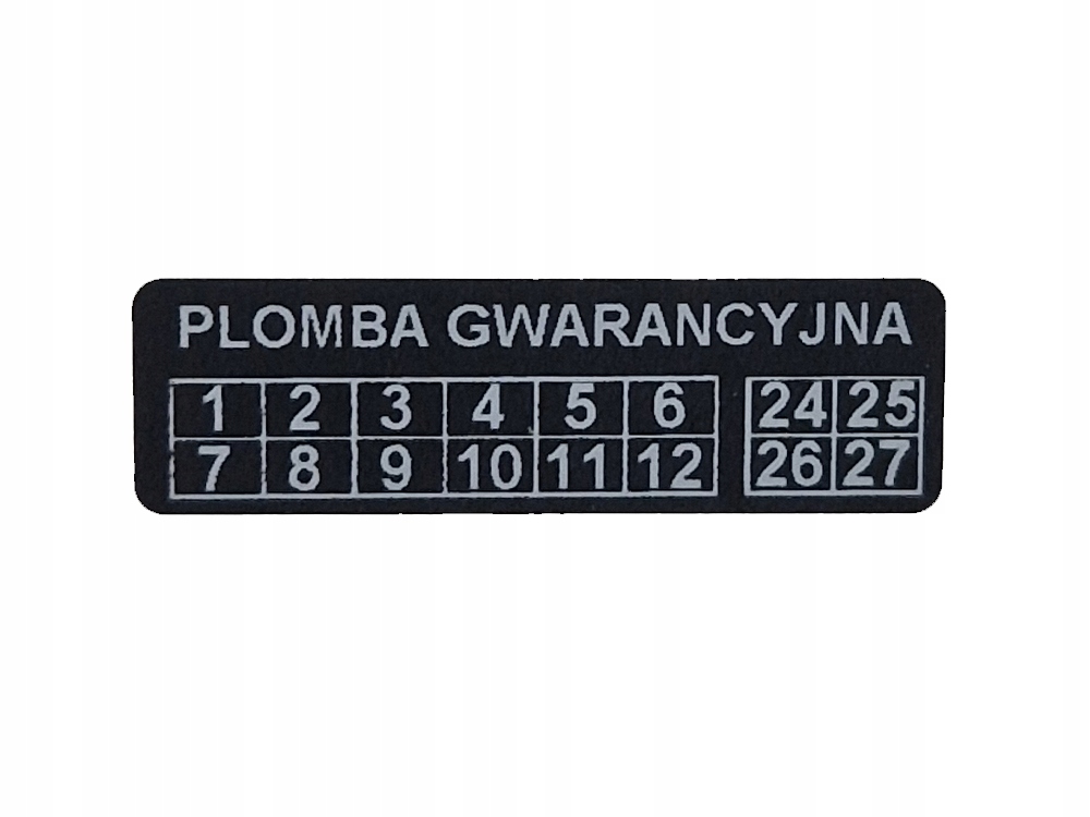 Oferujemy wykonanie 250 sztuk plomb gwarancyjnych w rozmiarze 40x12mm, z folii czarny OPEN VOID czysto usuwalny.
