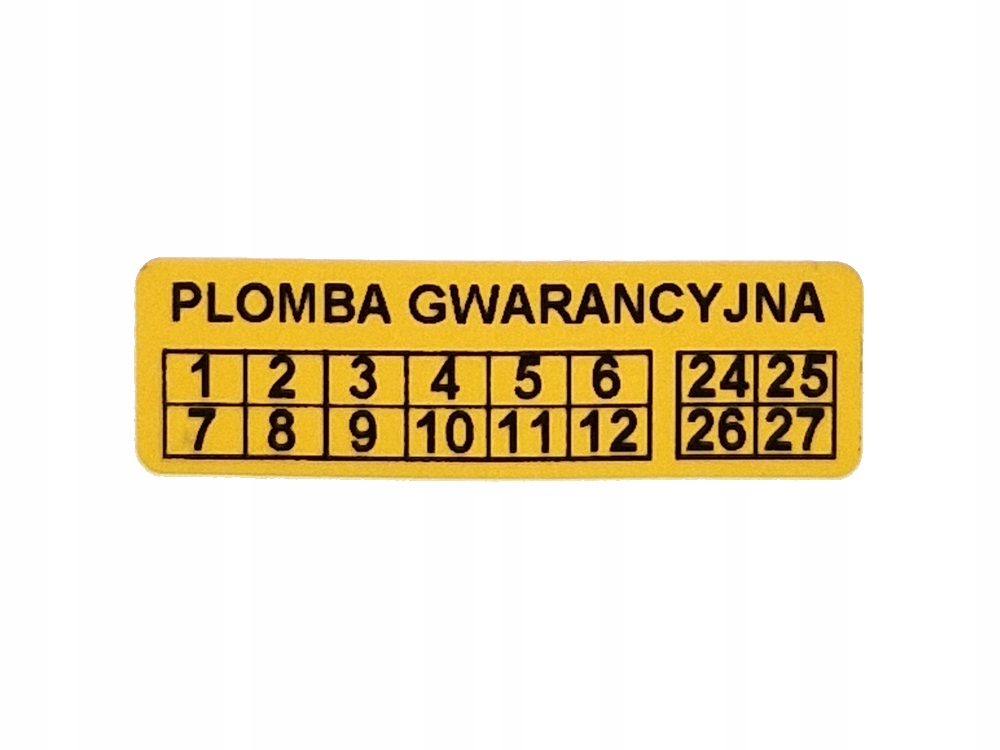 Oferujemy wykonanie 250 sztuk plomb gwarancyjnych w rozmiarze 40x12mm, z folii Żółty OPEN VOID.