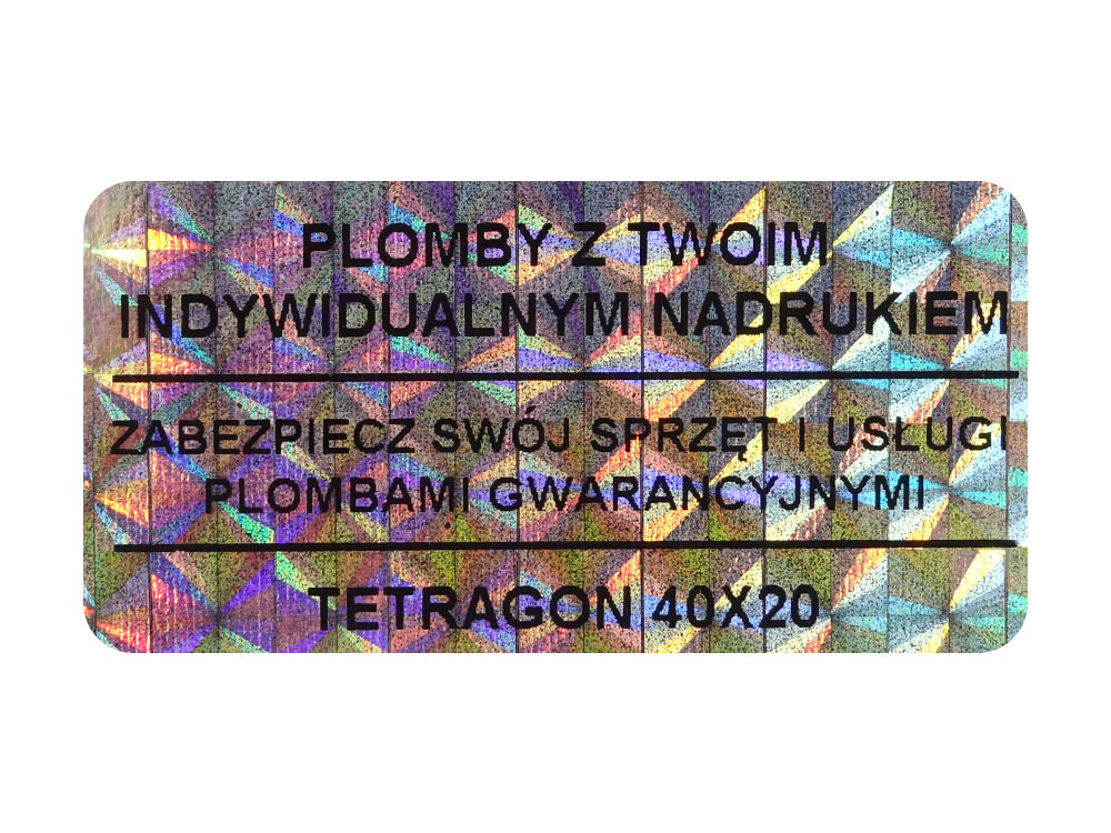 Oferujemy wykonanie 500 sztuk plomb gwarancyjnych w rozmiarze 40x20mm, z materiału HOLOGRAM TETRAGON.
