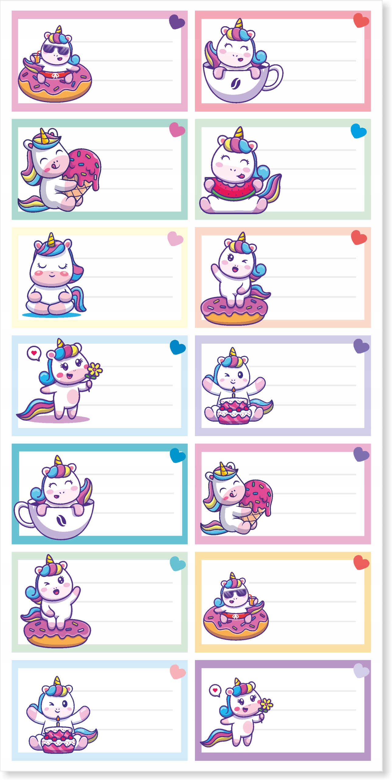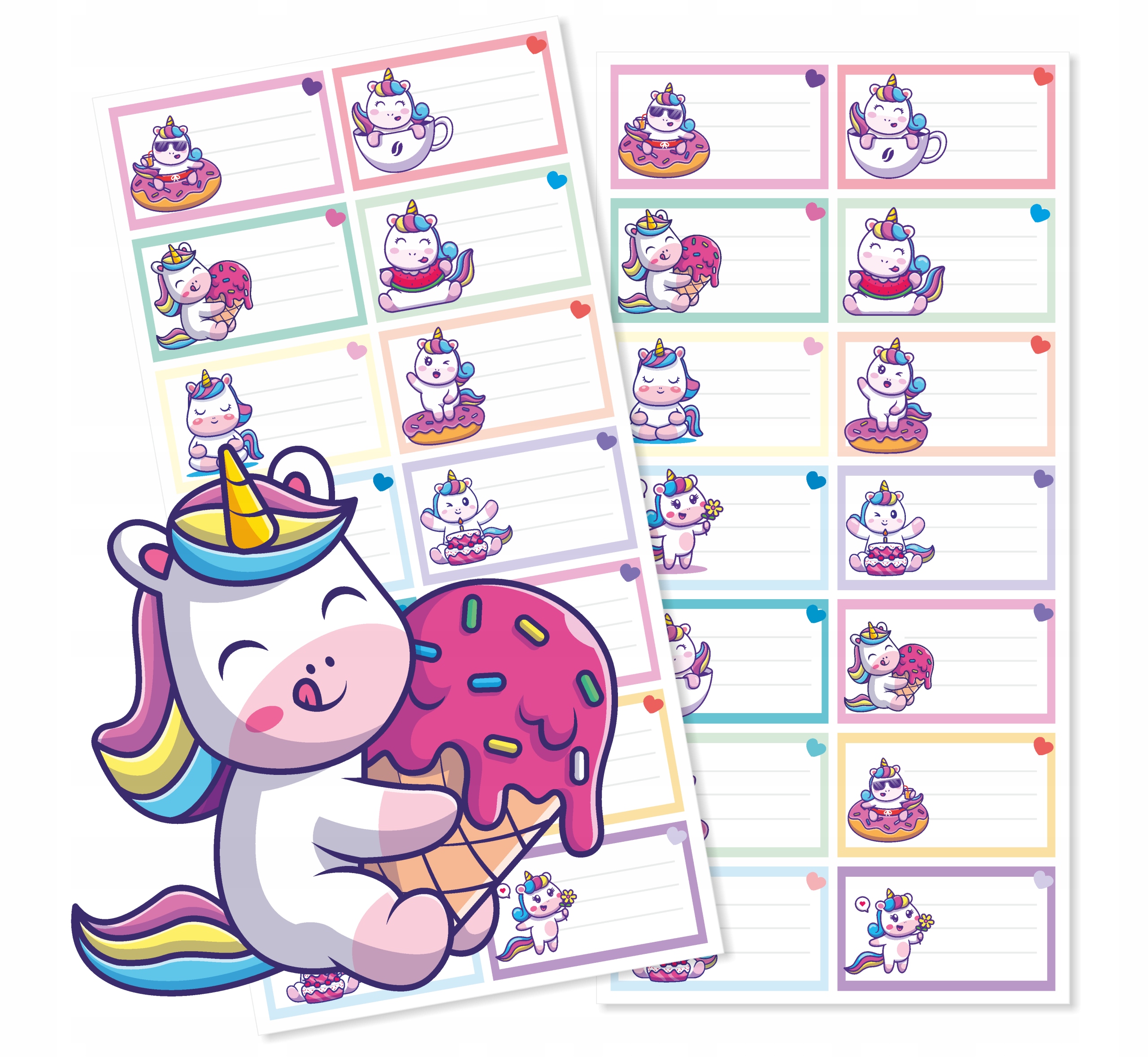 Naklejki na zeszyty dla dziewczynki z motywem jednorożca.