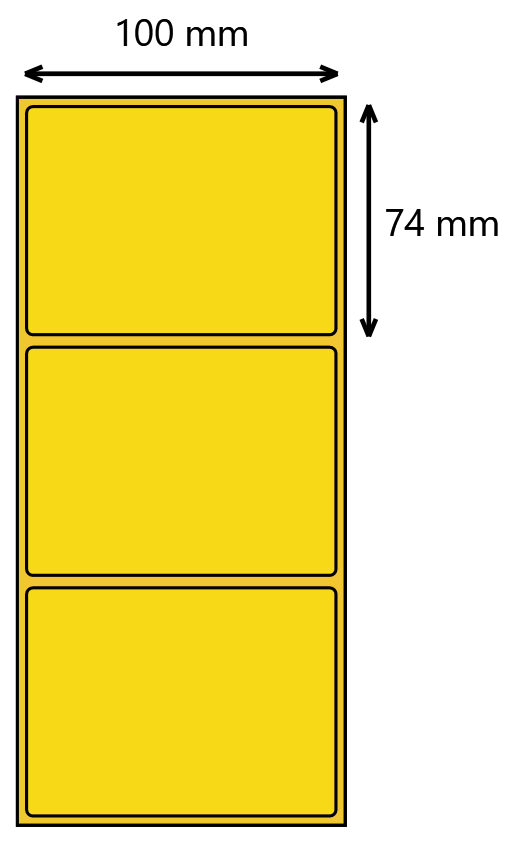 Etykiety termiczne żółte o wymiarach 100 x 74 mm są wykonane z trwałego papieru termicznego i wyposażone w mocny klej kauczukowy, zapewniają pewne i długotrwałe przyklejenie do różnych powierzchni.