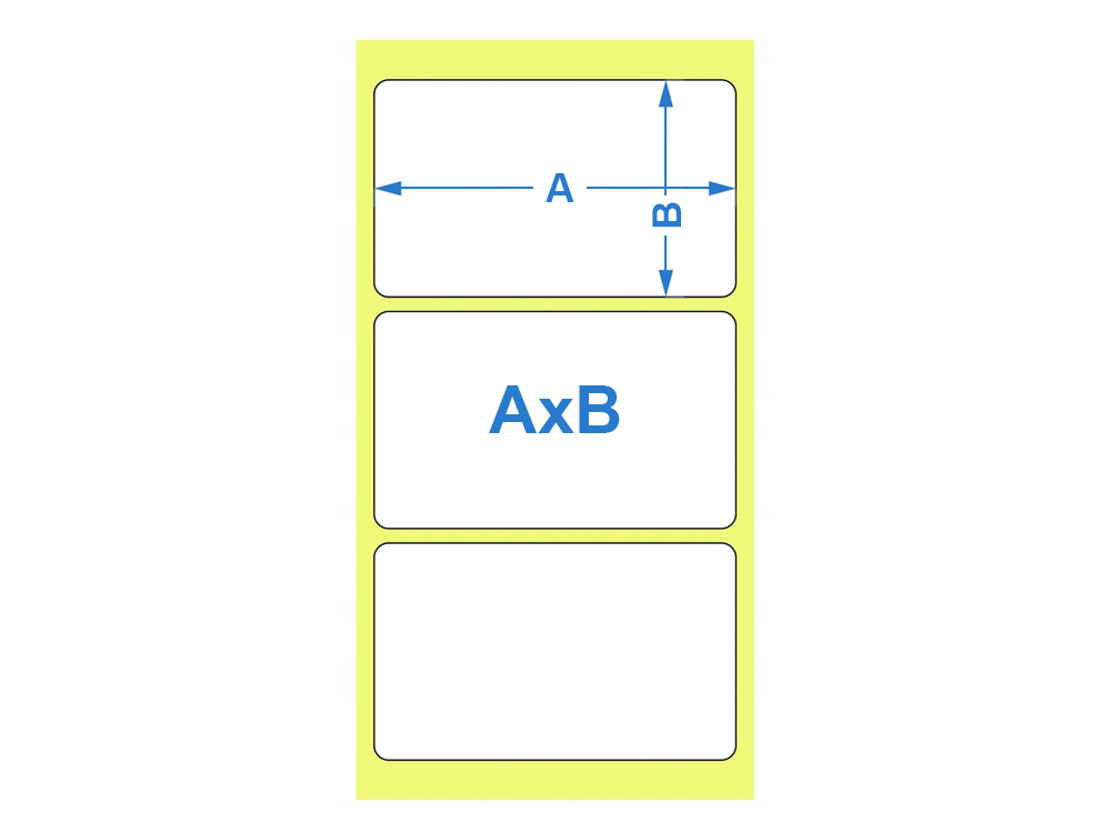 PIERWSZY WYMIAR PODANY NA AUKCJI TO SZEROKOŚĆ ETYKIETY (POZIOMO) X DRUGI WYMIAR TO WYSOKOŚĆ (PIONOWO) WEDŁUG ZAMONTOWANIA ROLKI W DRUKARCE - POPATRZ NA GRAFIKĘ PONIŻEJ.