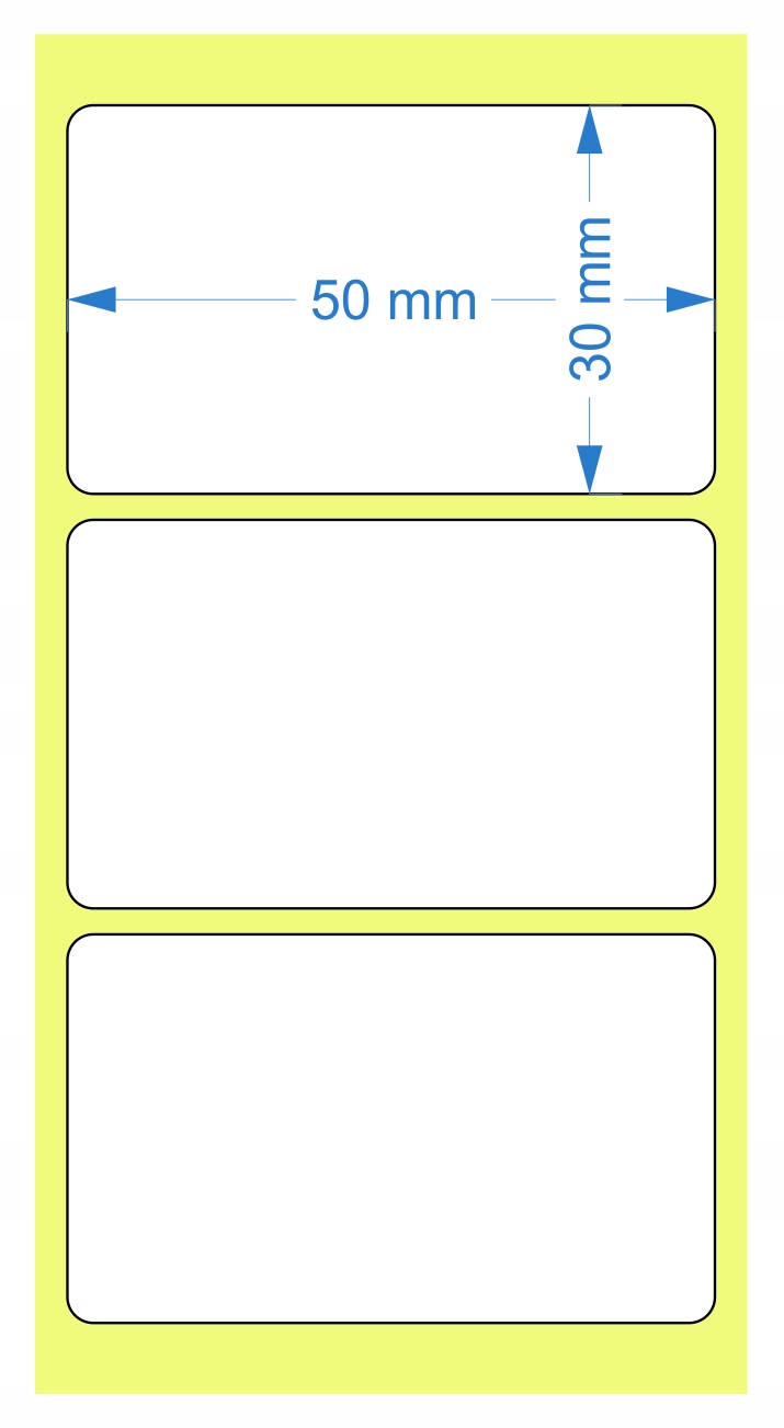 Wymiary / orientacja etykiet na przykładzie 50x30mm.