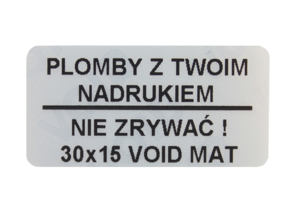 Oferujemy wykonanie 500 sztuk plomb gwarancyjnych w rozmiarze 30x15mm, z srebrnej matowej folii VOID.