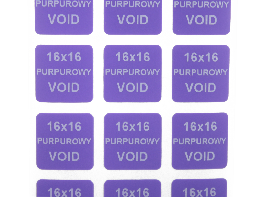 Oferujemy wykonanie 250 sztuk plomb gwarancyjnych w rozmiarze 16x16mm, z folii PURPUROWY VOID.