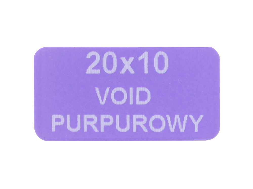 Oferujemy wykonanie 250 sztuk plomb gwarancyjnych w rozmiarze 20x10mm, z folii PURPUROWY VOID.