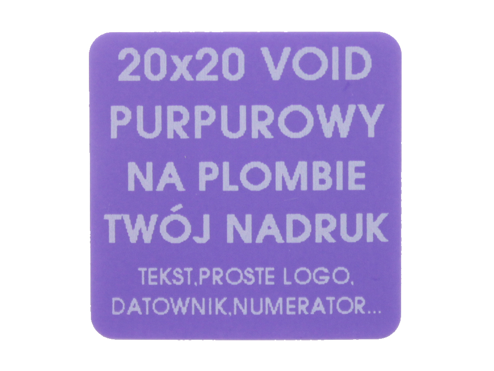 Oferujemy wykonanie 1000 sztuk plomb gwarancyjnych w rozmiarze 20x20mm, z folii PURPUROWY VOID.