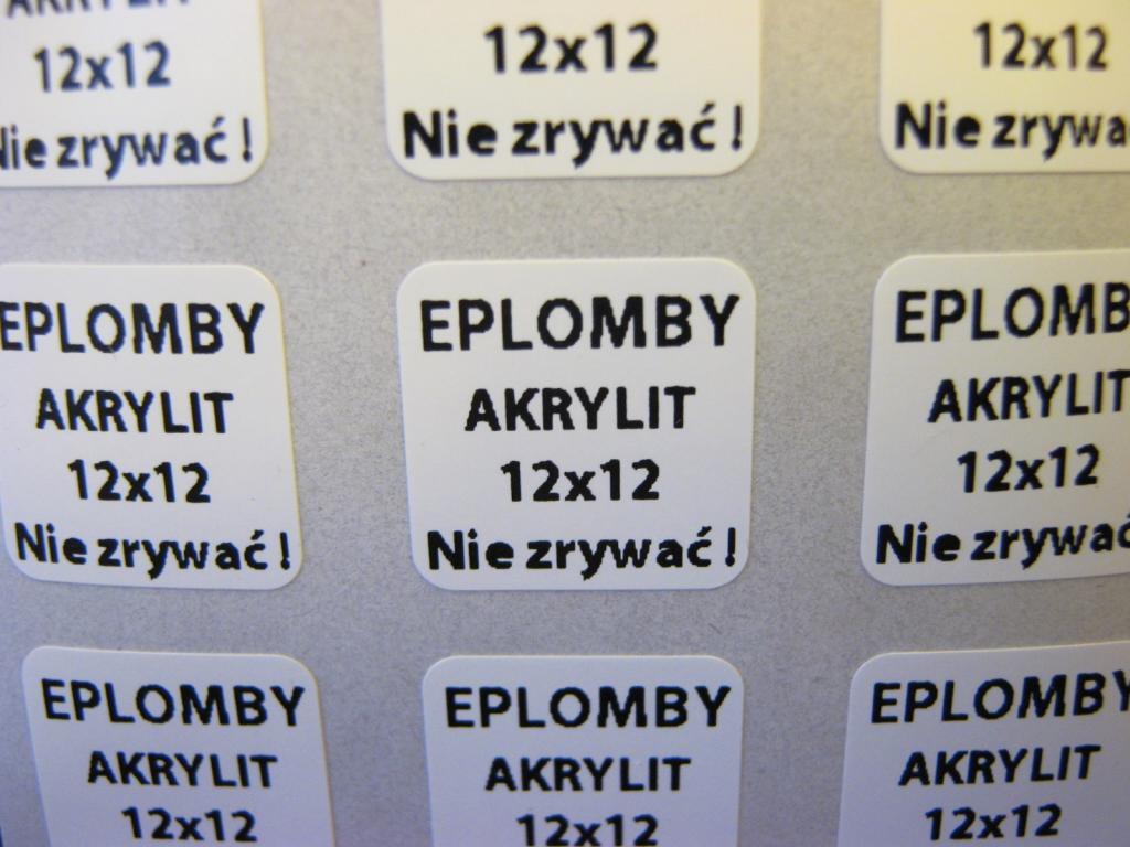 Oferujemy wykonanie 1000 sztuk plomb gwarancyjnych w rozmiarze 12x12mm, z białej łatwo kruszącej się folii (AKRYLIT) z Twoim indywidualnym nadrukiem.