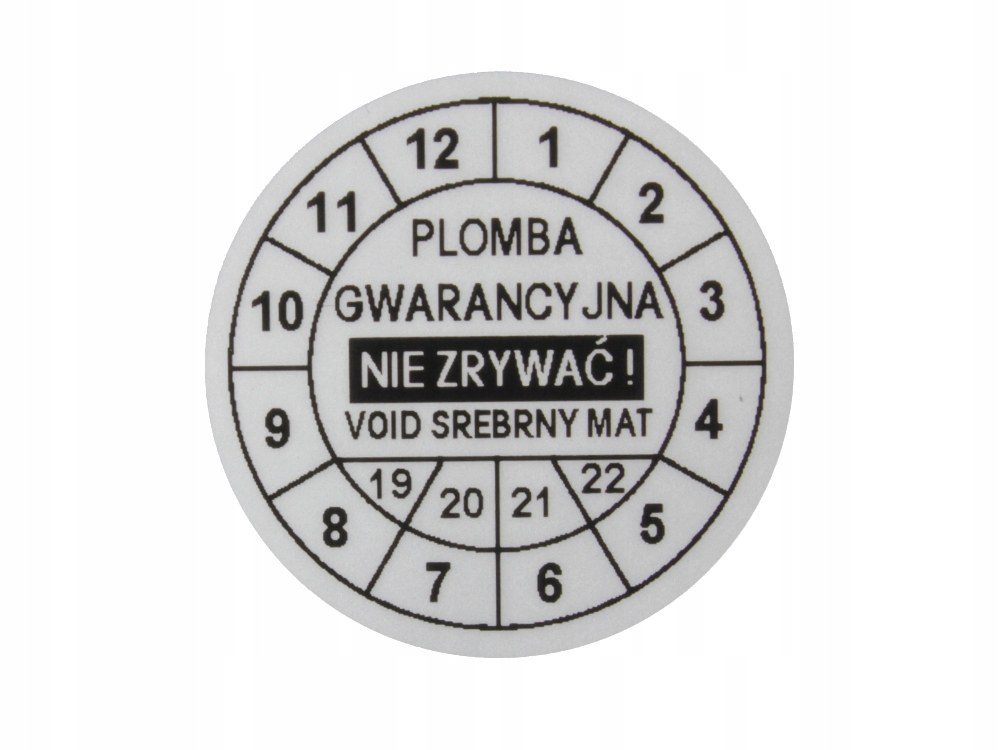 Oferujemy wykonanie 1000 sztuk plomb gwarancyjnych w rozmiarze Fi 30mm, z srebrnej matowej folii VOID.