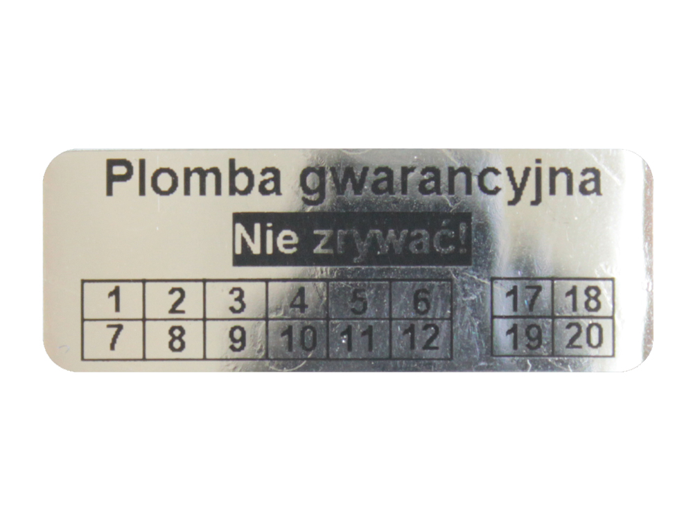 Oferujemy wykonanie 250 sztuk plomb gwarancyjnych w rozmiarze 30 x 11mm, z materiału srebrny lustrzany VOID.