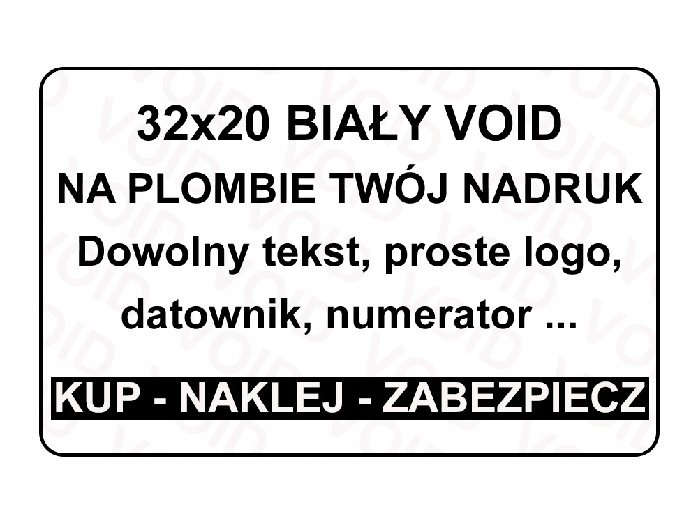 Oferujemy wykonanie 250 sztuk plomb gwarancyjnych w rozmiarze 32x20mm, z białego, błyszczącego materiału VOID.