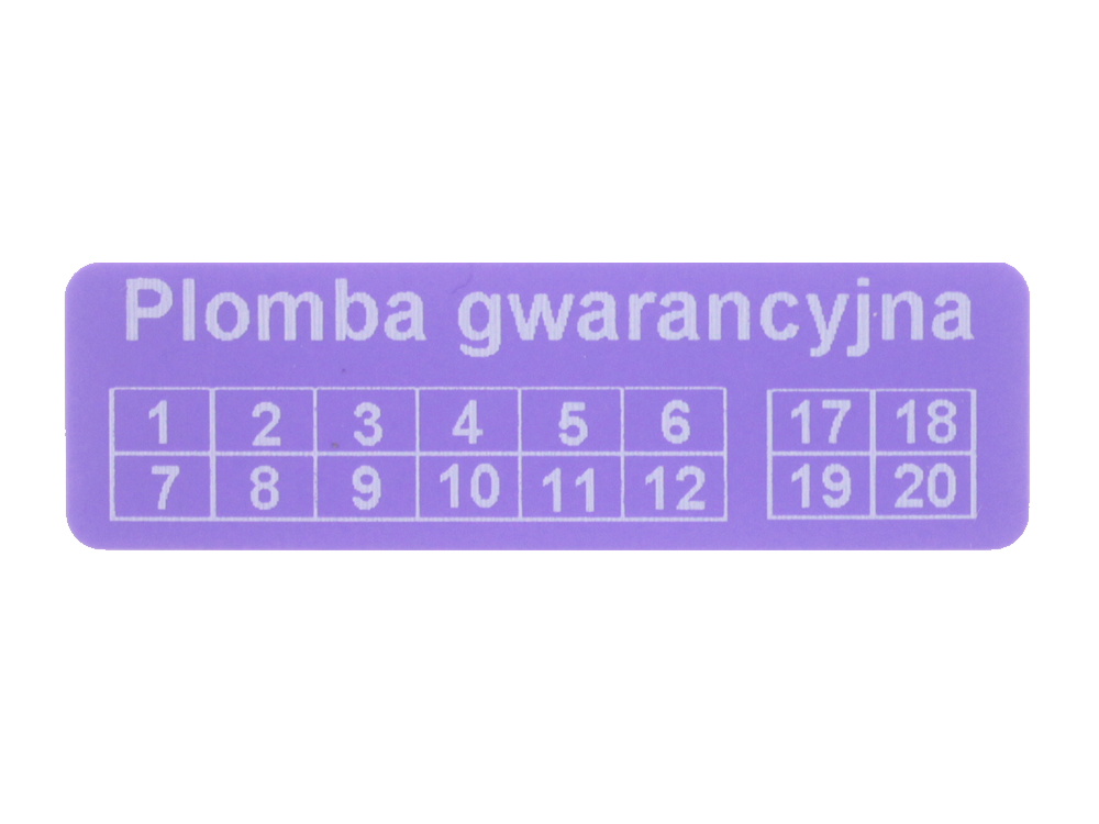 Oferujemy wykonanie 1000 sztuk plomb gwarancyjnych w rozmiarze 40x12mm, z folii PURPUROWY VOID.