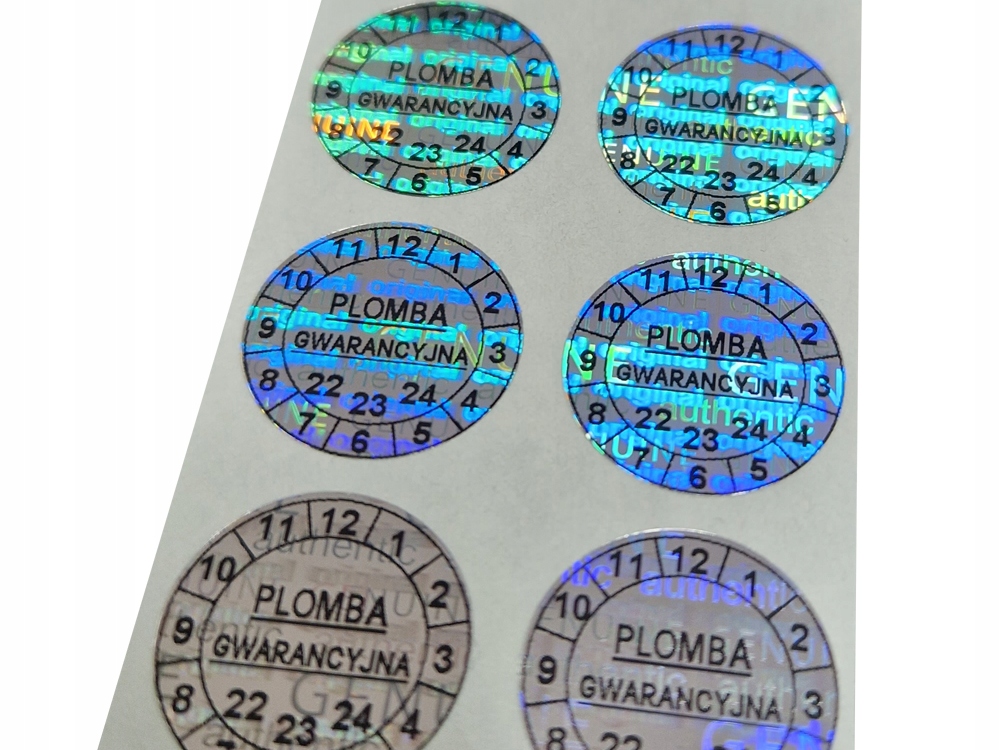 Oferujemy wykonanie 250 sztuk plomb gwarancyjnych w rozmiarze Fi30mm, z folii HOLOGRAM Genuine Original.